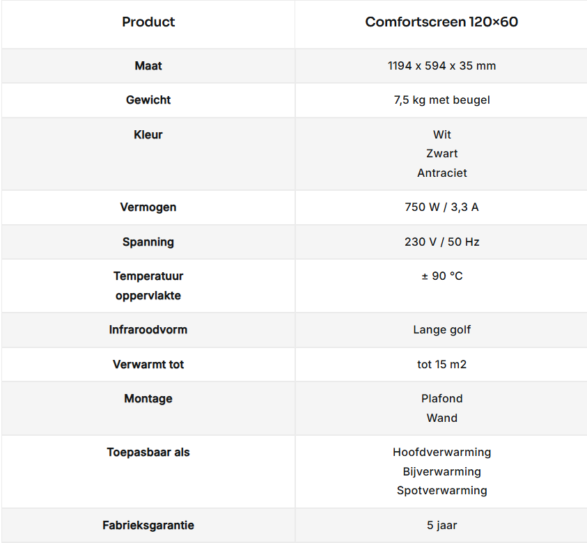 Onze Comfortscreens zijn een resultaat van ruim 25 jaar aan ervaring. Dankzij de aluminium behuizing wordt een optimaal rendement behaald voor de opwarmtijd van het paneel. De materialen die toegepast worden en bijbehorende componenten zijn zorgvuldig geselecteerd en worden op Nederlandse bodem samengesteld.